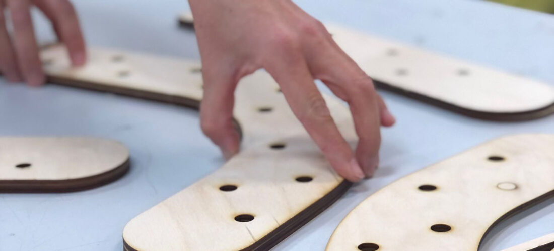 El proceso de fabricación propuesto es el corte láser, ya que puede aplicarse a distintos materiales, como la madera reciclable o incluso determinados cartones sostenibles que cumplan con las prestaciones necesarias de resistencia, durabilidad y sensación táctil similares a las de la madera.